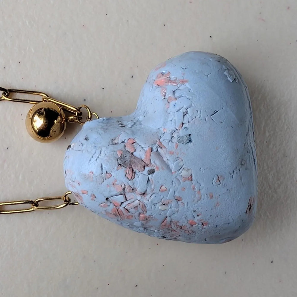 Handcrafted heart pendant made from colored porcelain and celadon clays, glazed and fired at 1280°C for durability and a soft, tactile finish.