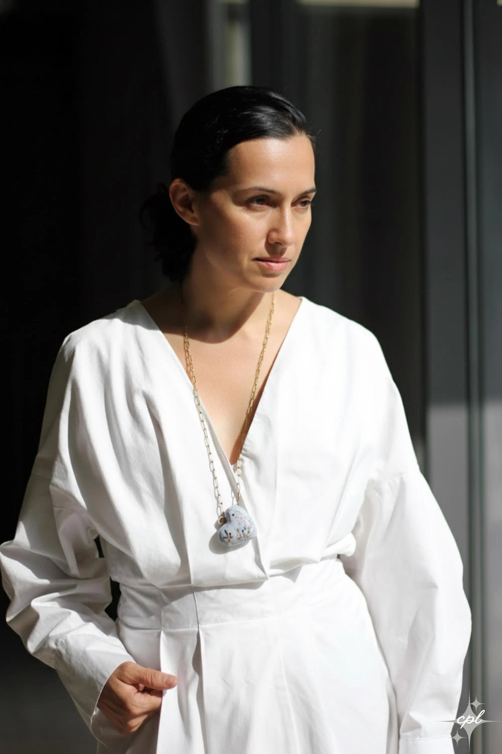 • Materials: colored porcelain, celadon clay, 12% liquid gold, stainless steel chain
