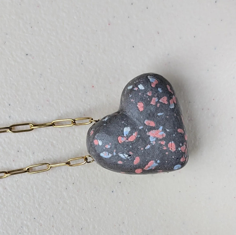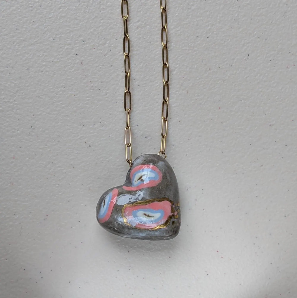 Handcrafted heart pendant made from colored porcelain and celadon clays, glazed and fired at 1280°C for durability and a naturally smooth surface.