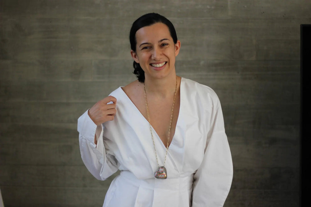 In our shop, no two pieces are identical in color composition or gold placement, making every necklace one of a kind.