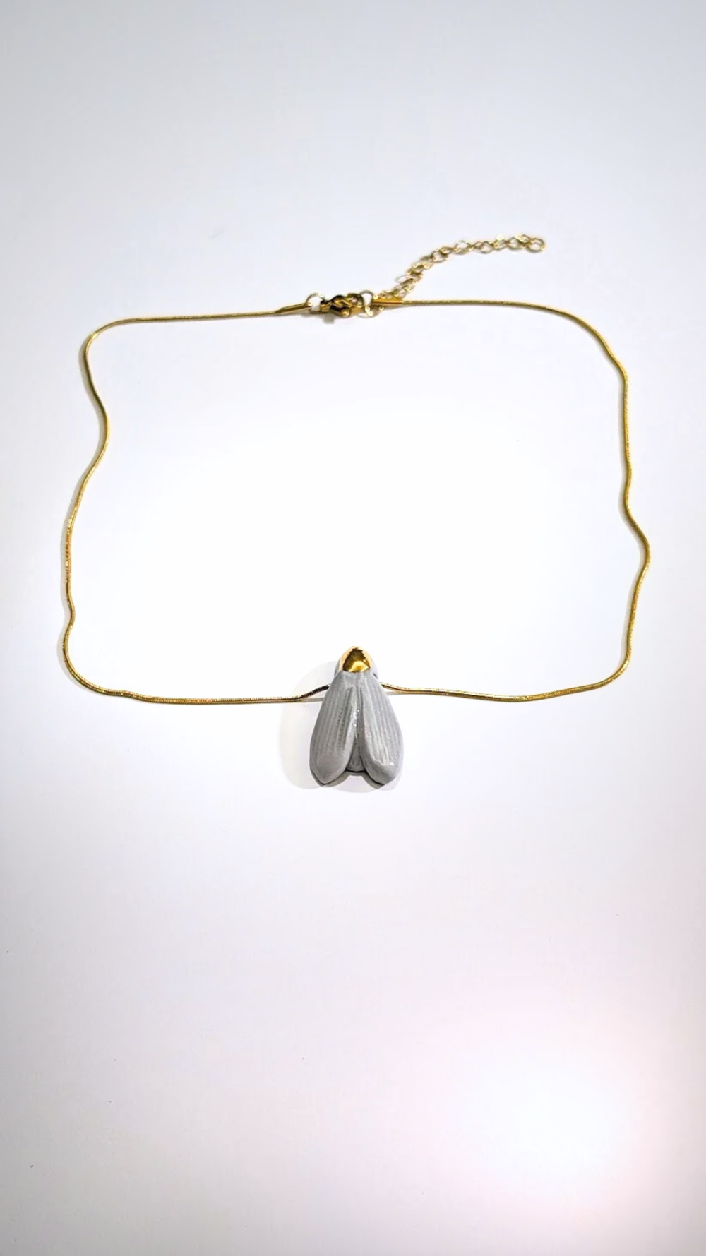 • Materials: hand-formed porcelain with 12% gold accents, stainless-steel snake chain
