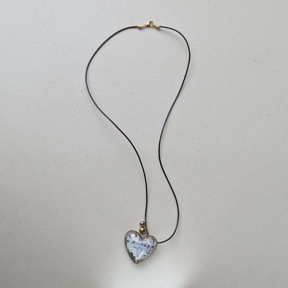 Handcrafted heart pendant made from colored porcelain and celadon clays, glazed and fired at 1280°C for lasting strength..