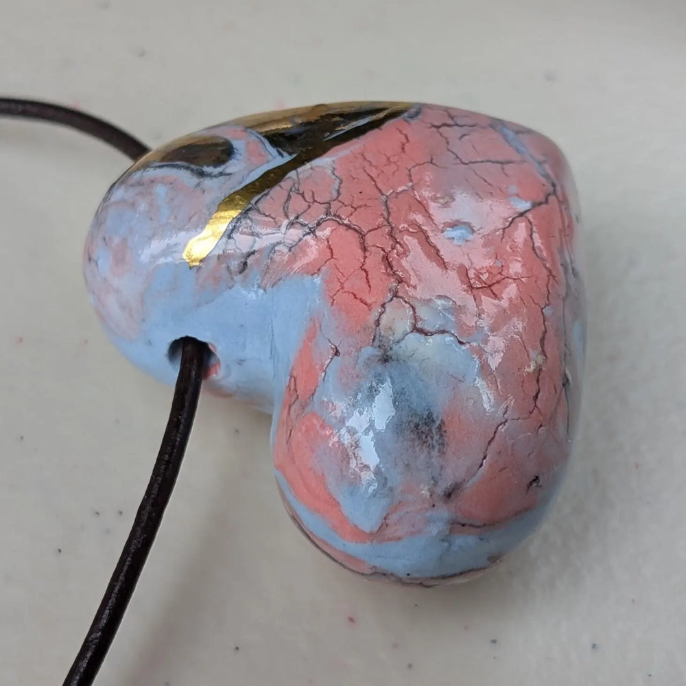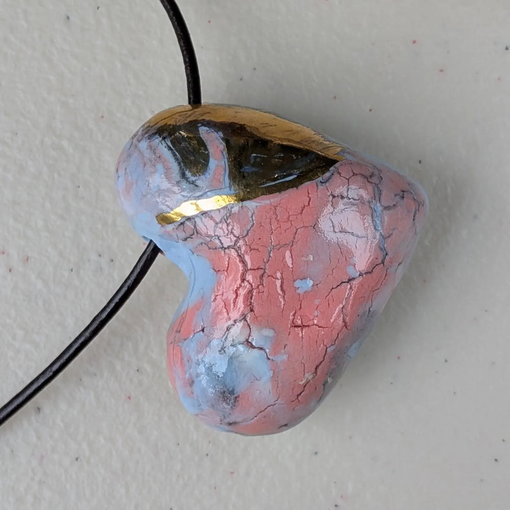 Handcrafted heart pendant made from colored porcelain and celadon clays, glazed and fired at 1280°C for durability and a natural, stone-like finish.