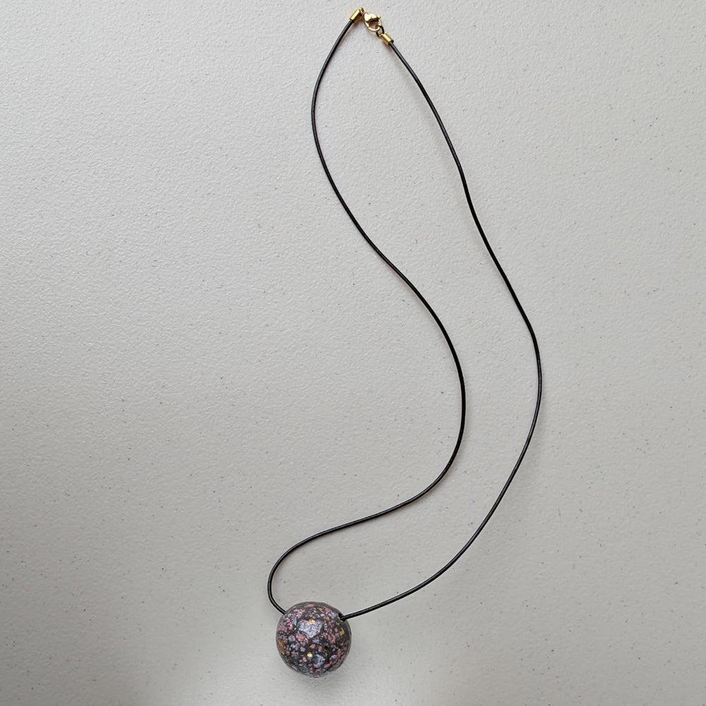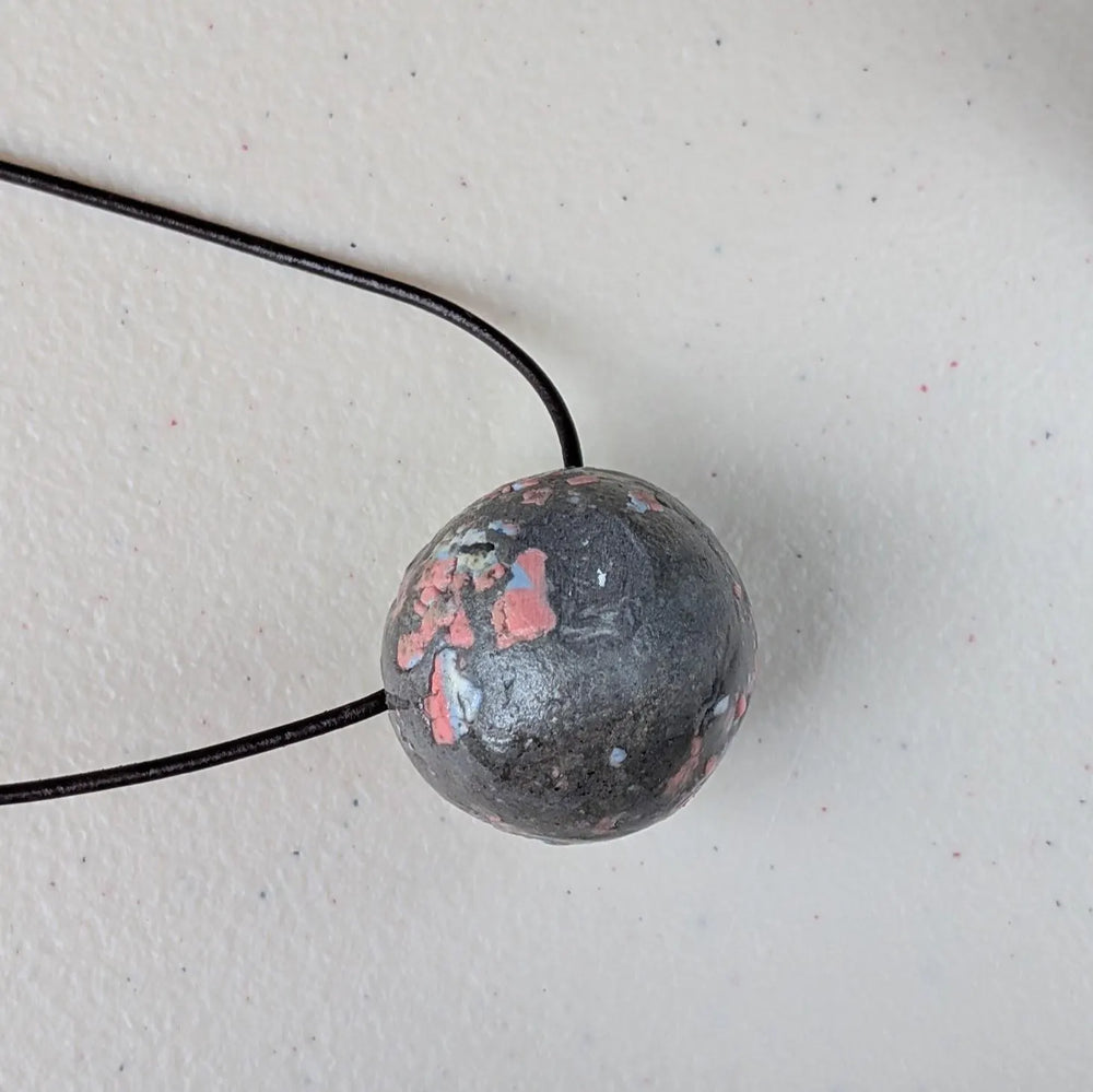 Handcrafted round pendant made from colored porcelain and celadon clays, glazed and fired at 1280°C for a strong, smooth finish.