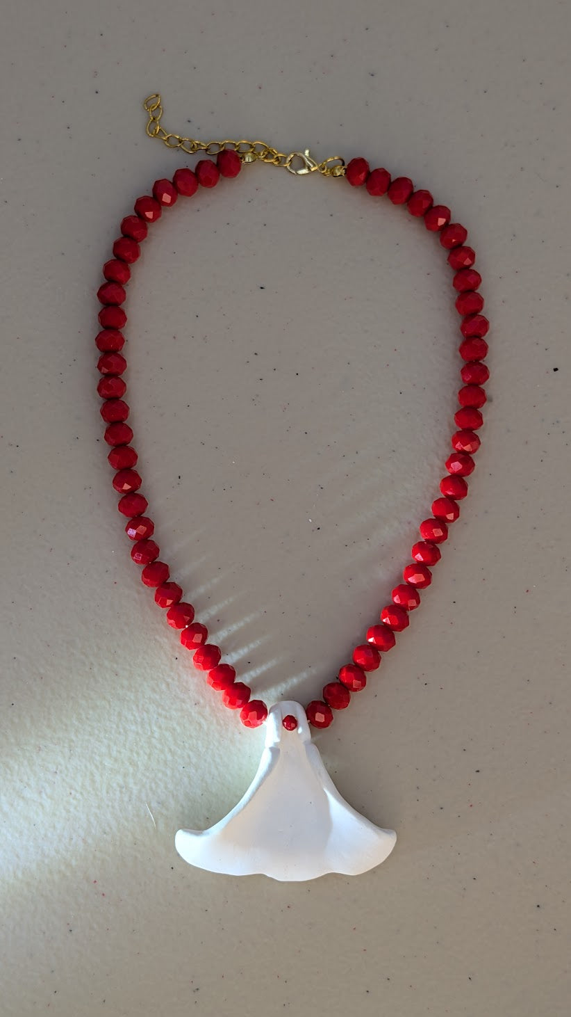 Dramatic fire red crystal beads with sculpted porcelain petal, designed for those who wear confidence as jewelry.
