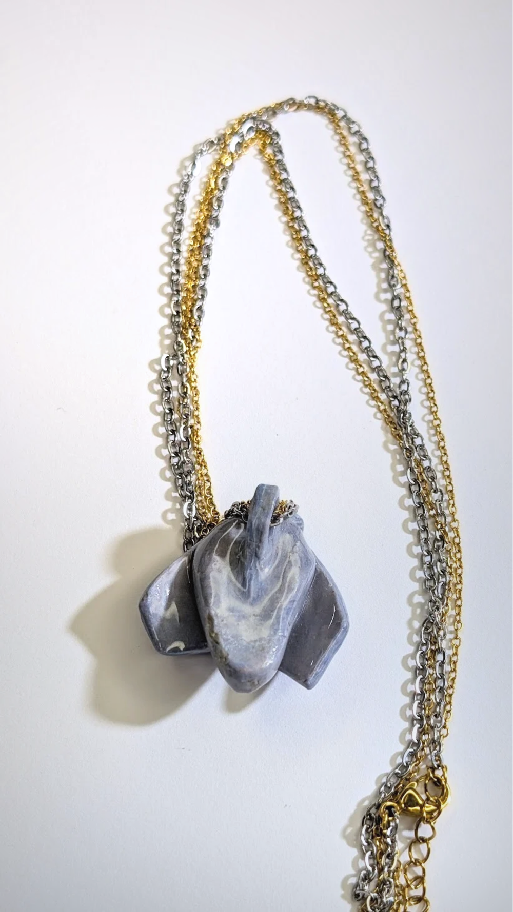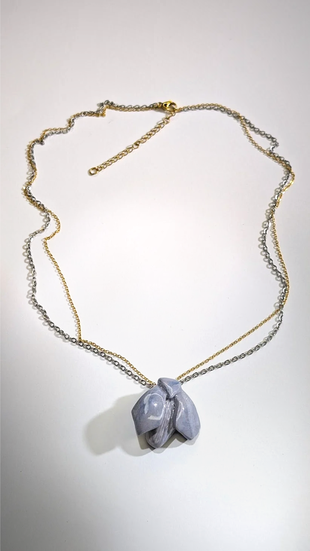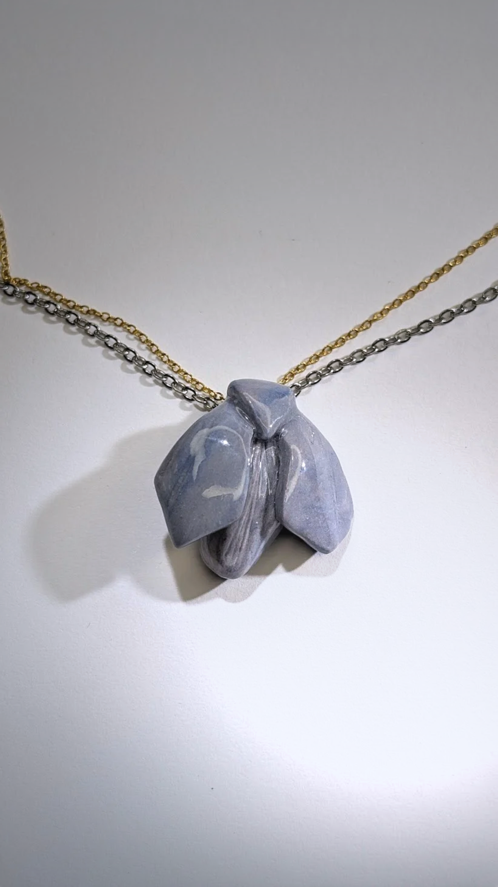 Materials: hand-sculpted porcelain pendant, stainless steel chains & clasp (mixed-tone)