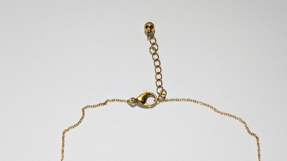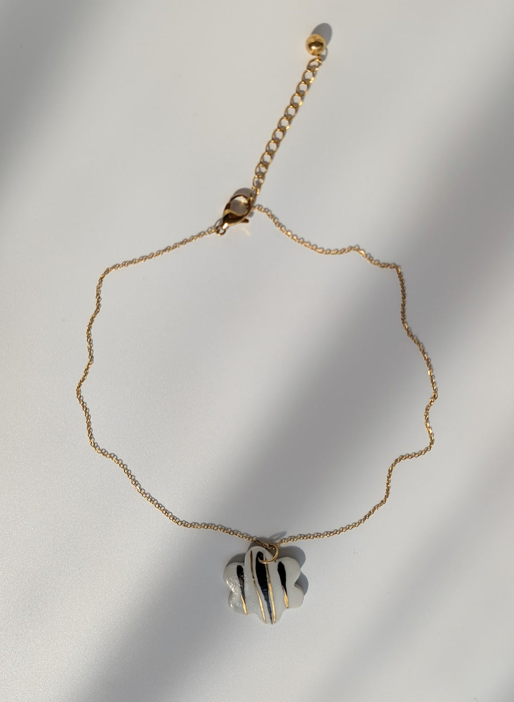 • Materials: hand-formed porcelain with black detailing and 12% liquid gold accents, stainless steel chain & clasps.